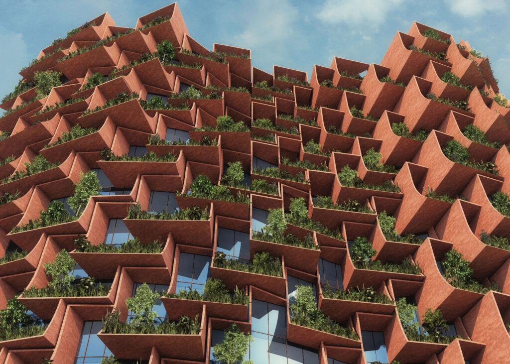 Mumbai merkezli Sanjay Puri Architects’in Afrika’daki The Forest projesi bu yaklaşımın somut bir örneğidir. Yüksek yoğunluklu konut tipolojisini ele alan bu proje, kademeli balkon sistemleri ve güneş kontrolüne duyarlı cephe organizasyonuyla dikkat çeker. Bu balkonların formu yalnızca estetik bir ritim üretmez; gölgeleme, hava sirkülasyonu ve kullanıcı mahremiyeti gibi kriterler parametrik model içinde birlikte değerlendirilir. Benzer şekilde Dubai’deki Agora Tower’da balkonların organik dalgalanması, hem yaşam kalitesini artıran açık alanlar üretir hem de cephe performansını optimize eder.