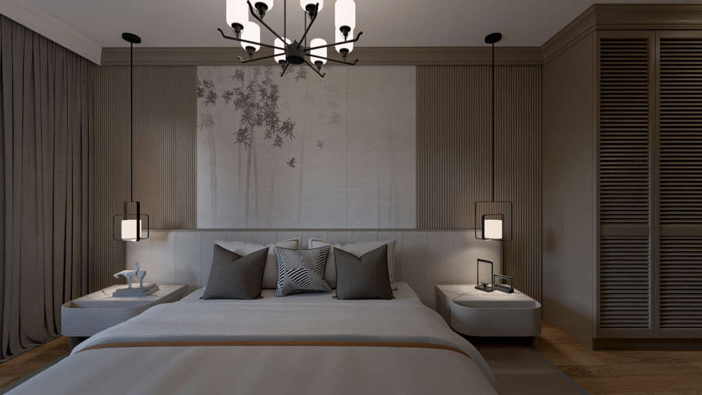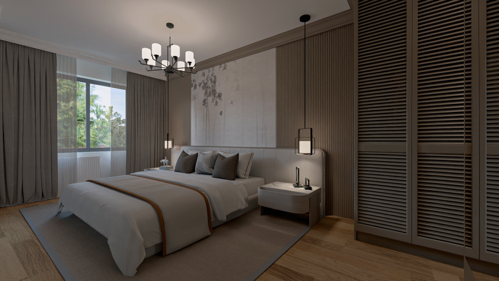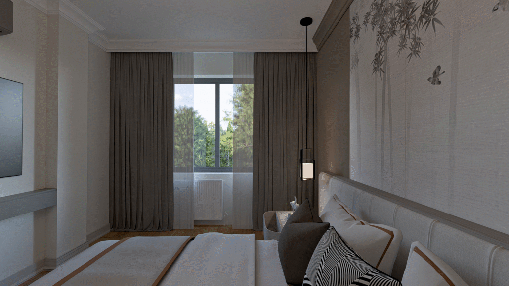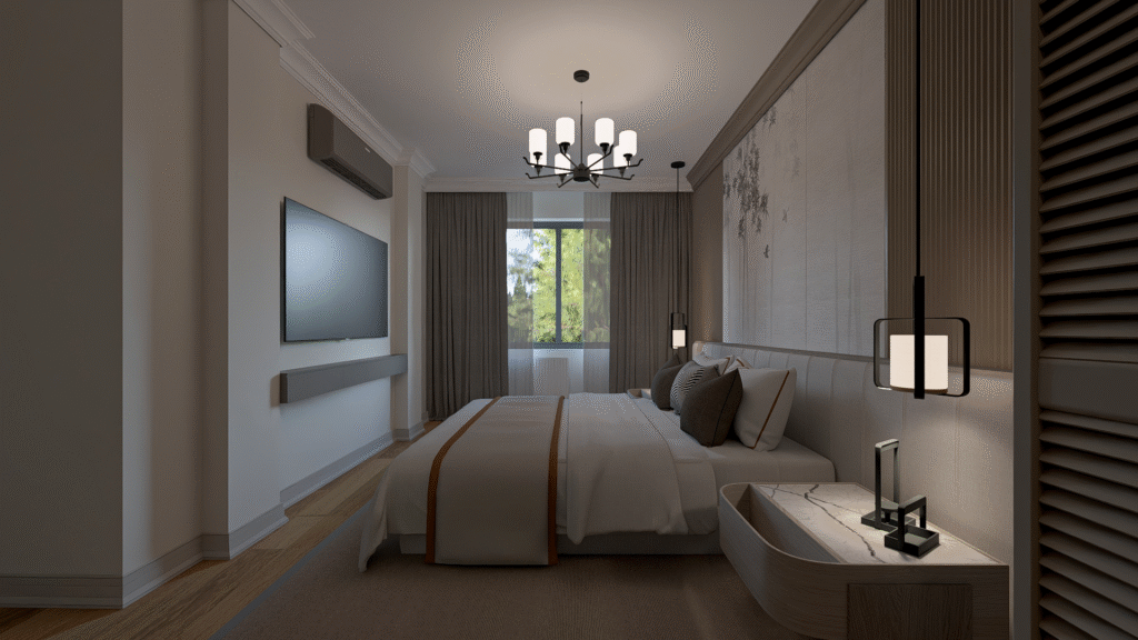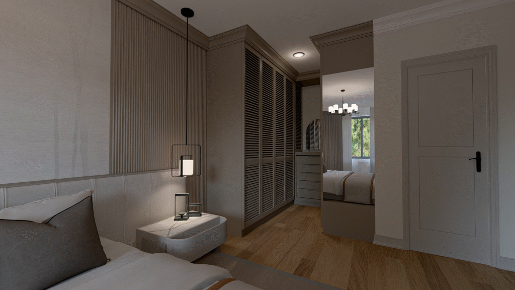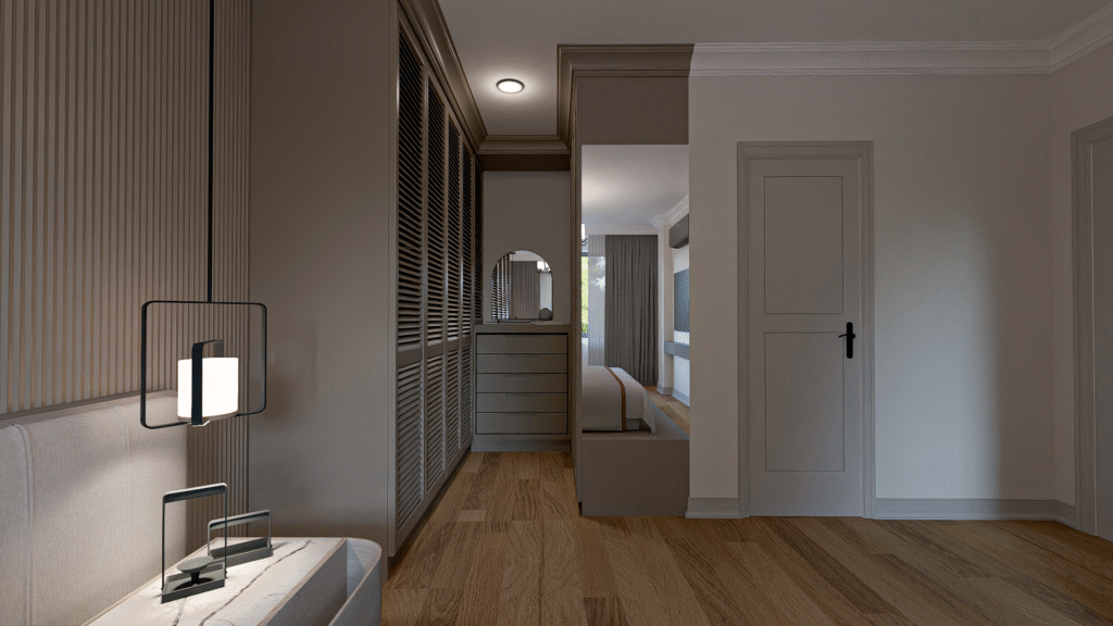 Kadıköy'de bulunan Algan House Yatak Odası Projesi, konfor ve işlevselliği ön plana çıkaran özel bir yaşam alanı sunmak üzere tasarlandı. Proje kapsamında tam iç mekân tasarım hizmetleri, özel gardırop çizimleri ve detaylı üretim koordinasyonu gerçekleştirildi.