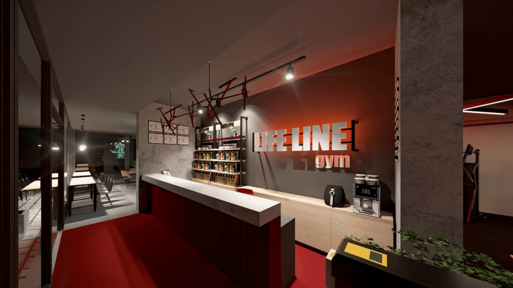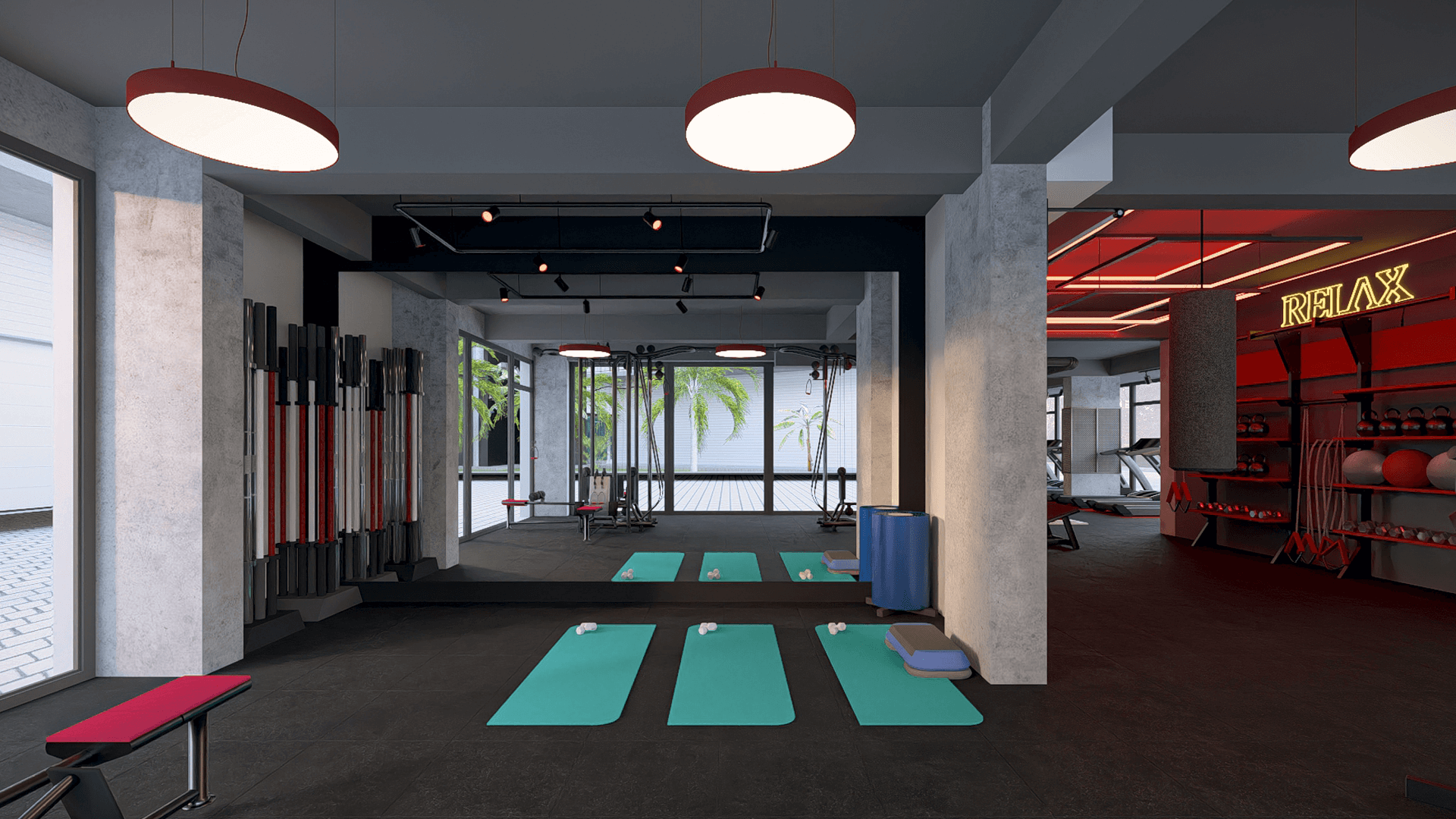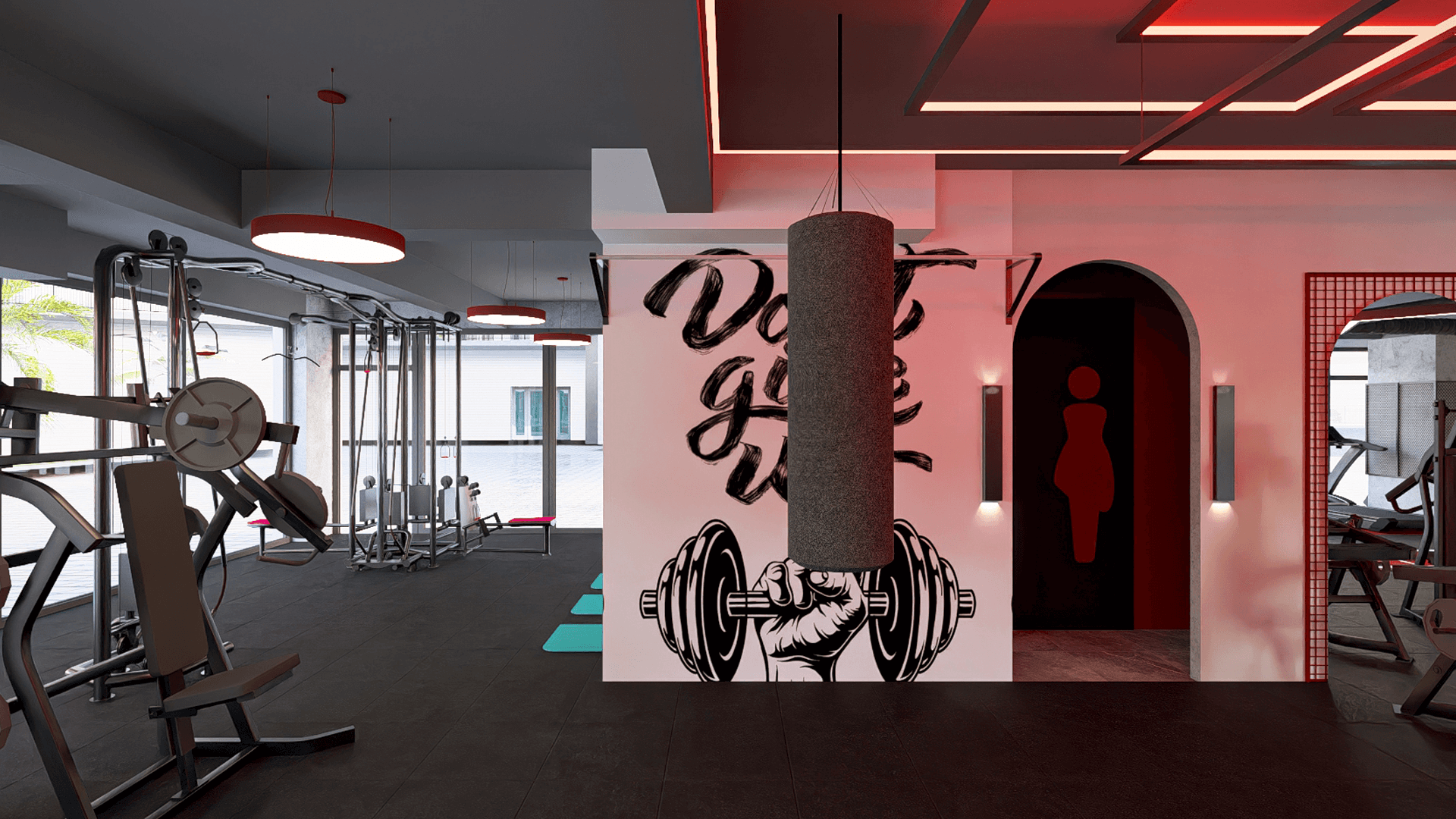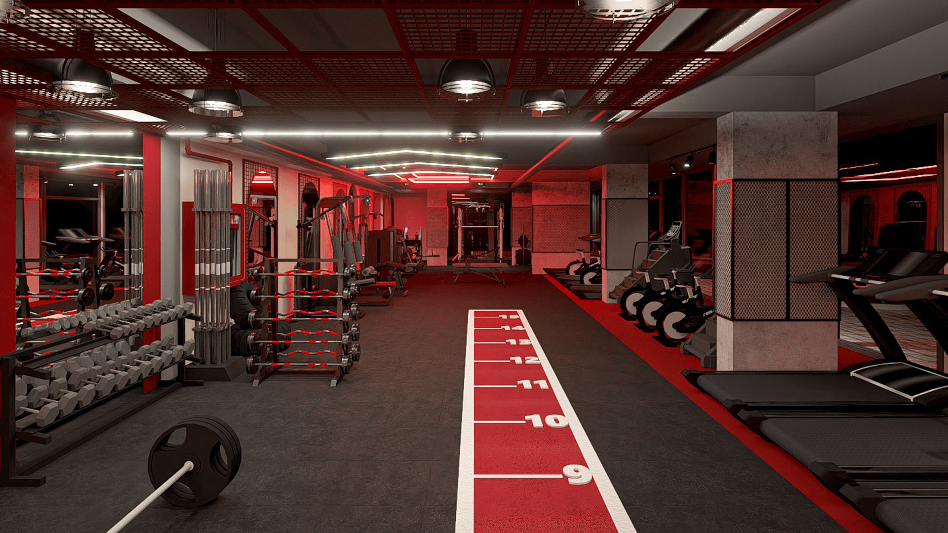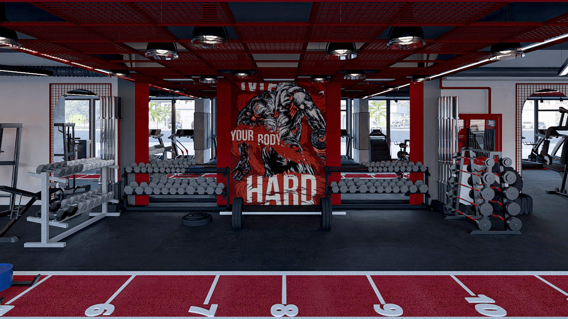 Yüksek performanslı bir fitness deneyimi için dinamik ve fonksiyonel bir iç mekân tasarımı.