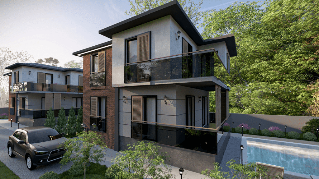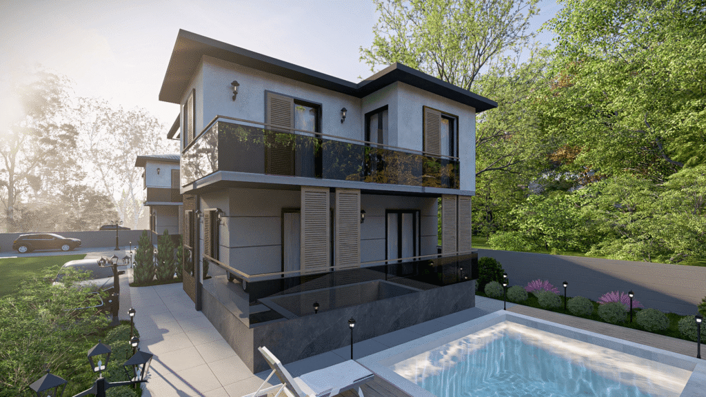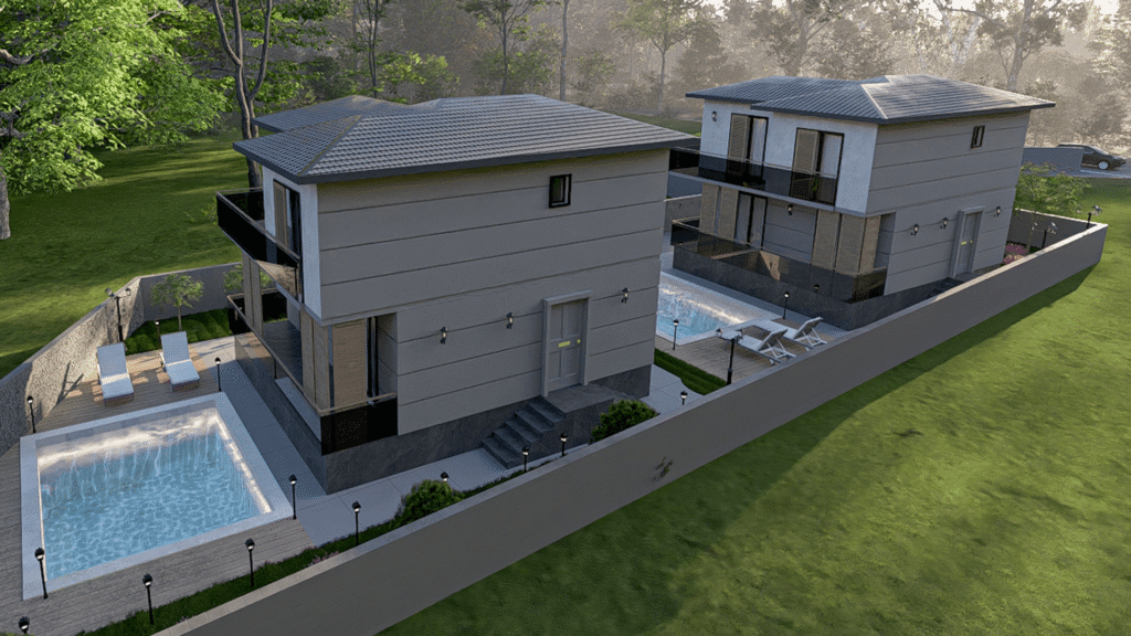 Ortaca’daki Ultra-Lüks Dubleks Villalar projesi için görselleştirme ekibimiz, inşaat başlamadan önce projenin özünü yansıtan detaylı 3D modeller ve fotogerçekçi renderlar geliştirdi. Villaların temiz mimari çizgilerini, huzurlu peyzaj entegrasyonunu ve işlevsel iç mekan akışını özenle hazırlanmış aydınlatma, malzeme çalışmaları ve mekânsal kompozisyonlarla sunuldu. Bu görseller, proje vizyonunu müşterimiz ve inşaat ortağımızla uyumlu hâle getirmede kritik rol oynayarak, geliştirme süreci boyunca netlik sağladı.